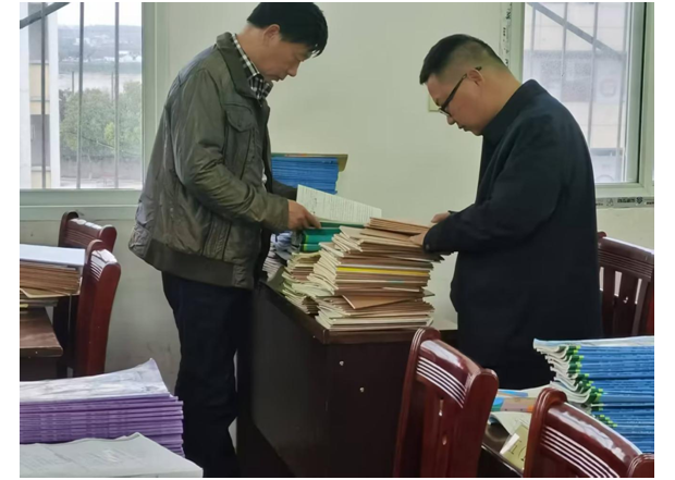 活動現場,各學科教師將教案、作業批改記錄、聽課筆記等教學資料整齊擺放,以學科組為單位進行集中自查與互查。大家認真翻閱、細致點評,針對教案設計的完整性、科學性,作業批改的規范性,教學反思的實效性等維度深入交流,在互學互鑒中查找不足、分享經驗。