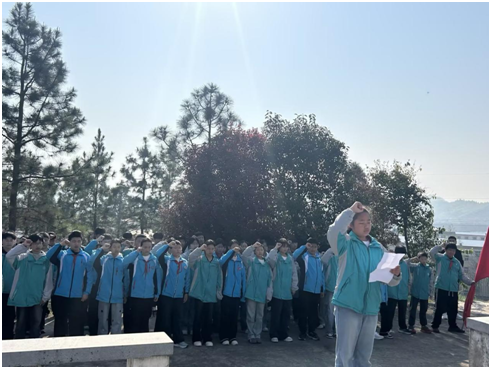 默哀結束后,學生代表們高舉右拳,面對烈士紀念碑莊嚴宣誓。鏗鏘有力的誓言回蕩在紀念地的上空,彰顯出新時代青少年立志傳承先烈遺志、勤奮刻苦學習、勇擔時代使命、立志報效祖國的堅定信念與蓬勃朝氣。
