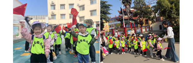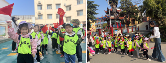 活動當天,陽光明媚,微風和煦。孩子們早早來到幼兒園,身著輕便的衣物,背著裝滿小零食的書包,臉上洋溢著期待與興奮的笑容,整齊列隊出發(fā)。一路上,孩子們歡聲笑語不斷,好奇地觀察著路邊綻放的花朵、抽芽的柳枝,嘰嘰喳喳地分享著自己發(fā)現(xiàn)的春日小秘密,稚嫩的童聲為春日的旅途增添了別樣的生機。