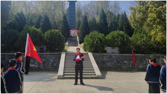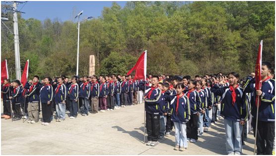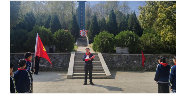 活動中,出旗、奏唱國歌與隊歌環節依次進行,鏗鏘的旋律、嘹亮的歌聲在陵園上空回蕩,孩子們用最真摯的方式,訴說著對祖國的熱愛和傳承英烈遺志的決心。學生代表登臺獻詞,字字句句飽含對先烈的崇敬;宣講人娓娓道來本地烈士的英雄事跡,那些浴血奮戰、舍生取義的故事,讓孩子們真切懂得如今的和平幸福生活來之不易。校領導也為孩子們送上殷切寄語,叮囑大家將英烈精神記在心里、融入日常,以先烈為榜樣,扛起少年的時代責任,孩子們聽得格外認真,把囑托深深記在心底。