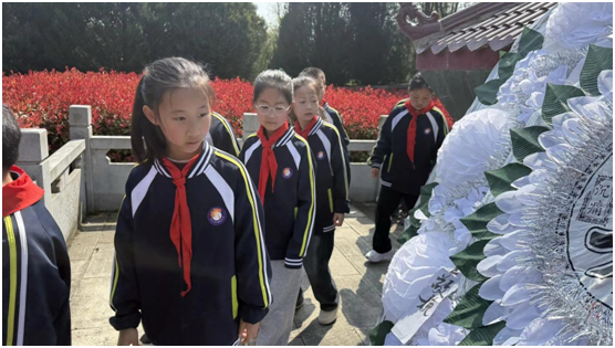 隨后,孩子們在輔導員的帶領下重溫入隊誓詞,錚錚誓言久久回蕩,讓紅色基因深深根植在每個孩子心中。在莊嚴的呼號聲后,隊旗緩緩退場,各中隊有序瞻仰烈士紀念碑,孩子們靜靜聆聽碑文故事,全程肅靜,用文明祭掃的實際行動告慰英烈。