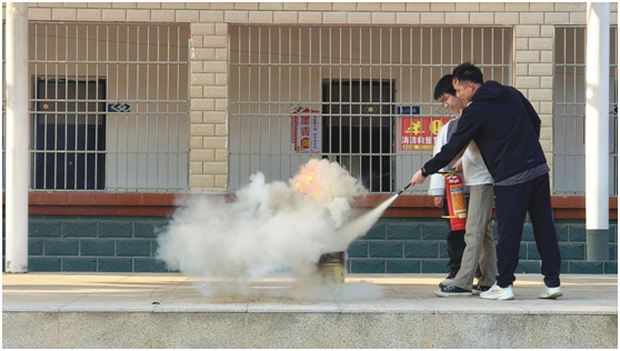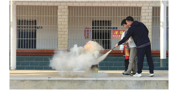 疏散演練結束后,政教處主任王思捷開展消防科普教育。他不僅向全體師生細致講解了火災預防、火場逃生、初期火災撲救等消防安全知識,還現場演示了滅火器的正確使用方法,重點強調了滅火器使用“四步法”。為檢驗學習效果,現場抽取學生上臺實操演示滅火,讓學生在親身體驗中掌握滅火技能;同時通過隨機提問的方式,考查學生消防安全知識掌握情況,學生們積極應答,現場互動氛圍濃厚。