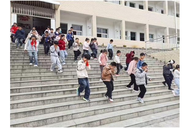 隨著警報聲響起,演練正式開始。各班學生在老師的引導下,用濕毛巾捂住口鼻,彎腰低姿,沿指定路線快速、有序地撤離教學樓。整個過程緊張有序,無擁擠、無推搡,全體師生在規定時間內安全撤離至操場指定集合區域,圓滿完成疏散任務。