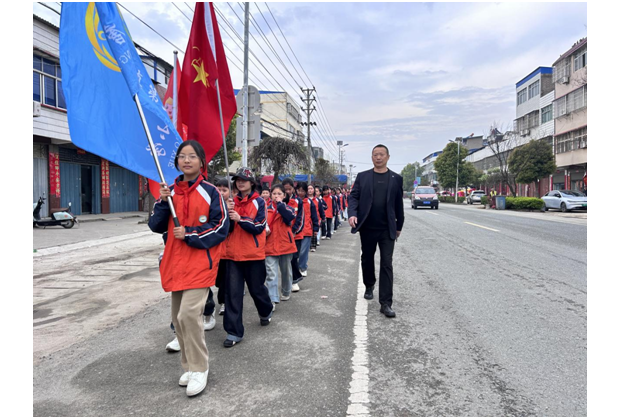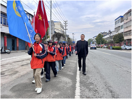 徒步磨礪意志,腳步丈量敬意。師生們精神飽滿、隊列整齊,懷著崇敬之情向烈士公墓行進。一路春光相伴,哀思縈繞心間,徒步的過程既是對體力的錘煉,更是一堂行走的思政課,讓學生在身體力行中感悟先輩奮斗精神,增強對革命英烈的敬仰之情。