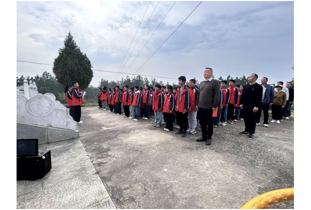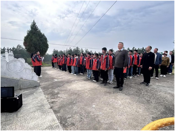 上午9時許,隊伍抵達九龍山烈士公墓。園內松柏蒼翠、莊嚴肅穆,全體師生整齊列隊于烈士紀念碑前,祭掃儀式在激昂的國歌聲中正式拉開帷幕。全體師生肅立,齊聲高唱中華人民共和國國歌,嘹亮的歌聲飽含著對祖國的熱愛與對先烈的敬仰。隨后,全場低頭默哀三分鐘,師生們神情肅穆,在靜默中深切緬懷為國家、為人民英勇獻身的革命先烈,寄托無盡哀思。