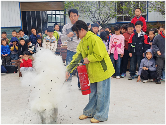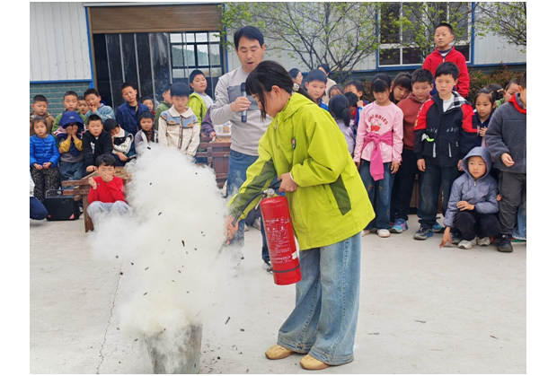 理論培訓結束后,滅火器實操演練正式開展。在老師的現場示范與一對一指導下,學生代表們依次上前,手持滅火器對準模擬火點,嚴格按照操作要領完成滅火動作。隨著白色干粉噴涌而出,模擬火點被迅速撲滅,孩子們在親身體驗中真正掌握了滅火技能,實現了從“理論認知”到“實戰操作”的跨越。圍觀的同學們全程認真觀摩,在實踐觀摩中深化了對消防技能的理解。