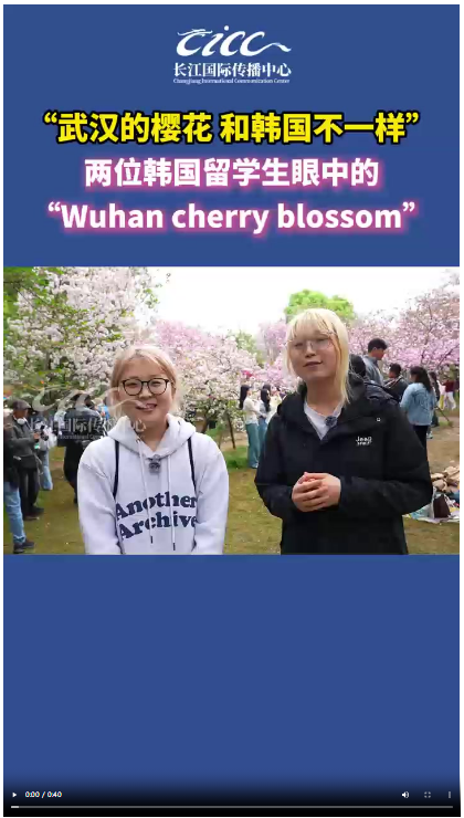 東湖櫻園里,在華中科技大學就讀的韓國留學生金施延和李韓潔剛好趕上了櫻花季的尾巴。她們說,在韓國看到的櫻花大多是粉色的,而武漢的櫻花粉白相間,像走進了花的海洋。同時她們也發現,來武漢可不只是為了看花——市集上擺滿了櫻花主題的小吃、飲品、紀念品,年輕人成群結隊地拍照、逛吃、發朋友圈!霸谖錆h,櫻花季已經是一種節日了。”她們笑著說。