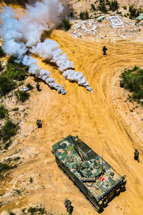 陸軍第73集團軍某旅“強軍精武紅四連”組織官兵開展連貫戰術訓練(2023年5月30日攝)。新華社發(劉志勇 攝)