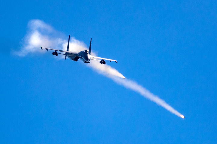 空軍航空兵某旅“強軍先鋒飛行大隊”飛行員駕駛戰機進行對地打靶訓練(2018年9月7日攝)。新華社發(楊盼 攝)