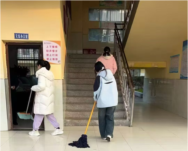 在此基礎上,全鎮教育系統全面展開校園及周邊環境整治大行動。各校對照檢查標準,對教學辦公區、生活服務區、公共區域等開展全方位、無死角的自查自糾,重點整治衛生死角、亂堆亂放、亂貼亂畫等問題,對食堂、宿舍、衛生間等重點場所嚴格落實消殺制度,規范垃圾分類投放,完善日常保潔機制;同步對校園周邊區域開展集中整治,清理暴露垃圾、規范車輛停放、清除小廣告,聯動營造整潔有序的校園周邊環境。