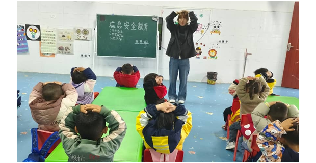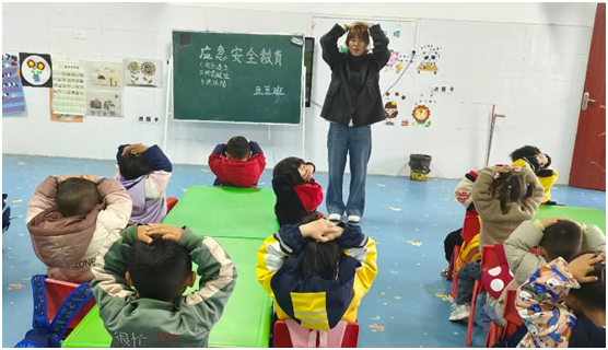 演練未啟,教育先行。為確保演練效果,讓幼兒真正掌握避險技能,演練前,各班級開展了情景式教學。老師們帶領孩子們提前熟悉應急流程:模擬突發火情時,教孩子折疊濕毛巾、正確捂鼻護口;模擬地震來襲時,引導孩子快速躲至桌下三角安全區、雙手抱頭護頸;模擬下樓梯踩踏隱患時,示范有序避讓、彎腰扶墻的正確處置方法,讓安全知識入腦。