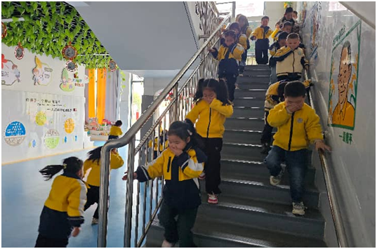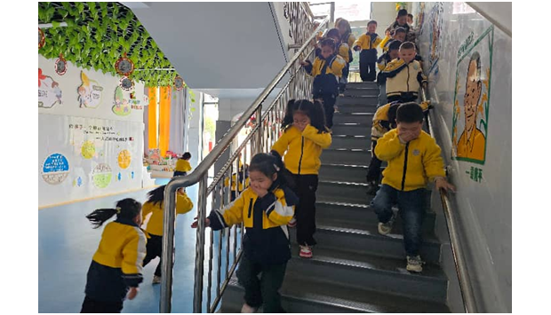 4月9日上午10時,隨著警報聲響起,演練正式拉開帷幕。全園迅速啟動應急預案,各班教師沉著冷靜,一邊輕聲安撫幼兒情緒,一邊引導孩子們彎腰捂鼻、抱頭護腦,嚴格按照預定路線快速有序撤離。撤離過程中,教師分工明確、前后守護。安全員全程在崗值守,在樓梯口、拐角處等關鍵位置疏導秩序,及時提醒幼兒不推擠、不慌張、不掉隊。短短3分鐘,全體師幼安全抵達操場指定集結點,各班教師迅速清點人數、上報情況,整個撤離過程規范有序、高效順暢。