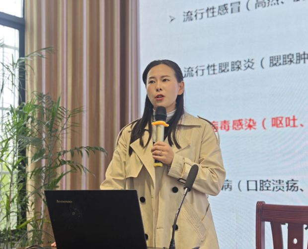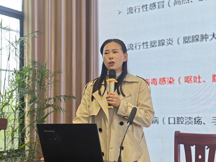 徐雁揚醫生詳細講解了流感、水痘、諾如病毒感染性腹瀉、肺結核等春季常見傳染病的發病癥狀、傳播途徑、易感人群及有效防控措施。同時,結合校園日常防控實際,重點科普了勤洗手、常通風、科學佩戴口罩、加強體育鍛煉、規律作息、合理膳食等個人防護要點,叮囑學生們若出現發熱、嘔吐、皮疹等不適癥狀,要及時就醫并主動報備,做到早發現、早隔離、早治療。