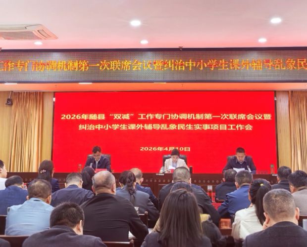 隨州新聞網(wǎng)訊 (通訊員胡云云)4月10日,隨縣召開2026年“雙減”工作專門協(xié)調(diào)機制第一次聯(lián)席會議暨糾治中小學(xué)生課外輔導(dǎo)亂象民生實事項目工作會議,深入貫徹落實省、市關(guān)于群眾身邊不正之風(fēng)和腐敗問題專項整治工作部署,進一步壓實監(jiān)管責(zé)任、細(xì)化工作舉措。