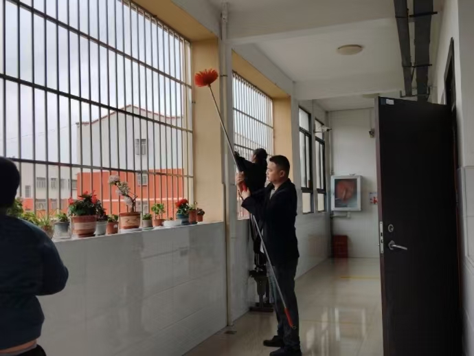 此次大掃除實行全域覆蓋、無死角清理,全校師生分工協作、各司其職,以教學樓為核心,對教室、教師辦公室、校園走廊、操場、綠化帶及各類衛生盲區開展全面整治。活動中,大家手持清潔工具,認真擦拭門窗桌椅,讓課桌椅、玻璃窗重煥潔凈光澤;細致清掃地面垃圾、清理角落積塵,徹底消除衛生隱患;精心整理教學用品、學習文具,讓校園各處擺放井然有序;俯身拔除綠化帶雜草,呵護校園綠植生機。