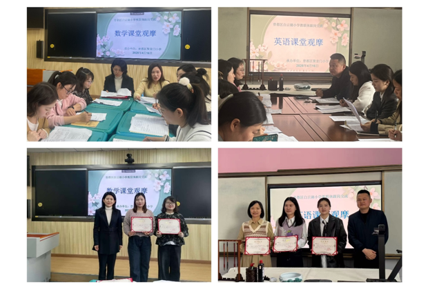 活動現(xiàn)場,白云湖小學教師帶來數(shù)學、英語學科項目式交流分享,隨后分別展示了五年級數(shù)學、四年級英語示范課;聚奎門小學教師同步呈現(xiàn)六年級數(shù)學、五年級英語觀摩課,為參會教師提供了多元的教學實踐參考。