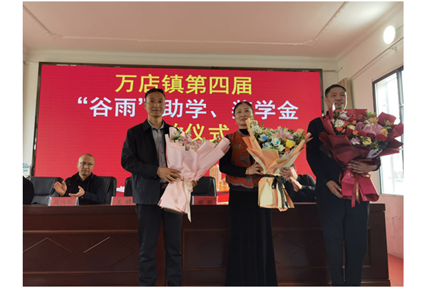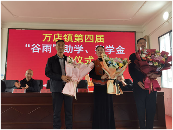 此次活動共計113名學生獲得 “谷雨” 基金資助獎勵,總金額10萬元。其中,萬店初級中學62名學生獲資助獎勵6萬元,含特困助學金2人(3000 元 / 人)、困難助學金30人(1000 元 / 人)、一等獎學金30人(800 元 / 人);萬店小學51名困難學生獲助學金4萬元。