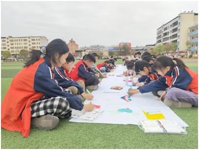 隨州新聞網訊 (通訊員徐敏、舒玉婷)4月21日清晨,唐縣鎮第二小學五年級全體同學以一場精彩的晨誦展示,拉開了迎接第31個世界讀書日活動的序幕。瑯瑯書聲響徹校園,同學們用聲音傳遞對閱讀的熱愛。而這一天的高潮,出現在下午的操場上,一幅十米長卷徐徐鋪展,“書香少年”們或蹲或趴,以筆為媒,以畫傳情。巍峨的書籍城堡、遨游書海的小舟、經典故事中的人物……斑斕色彩在筆尖流淌,勾勒出心中的閱讀世界。