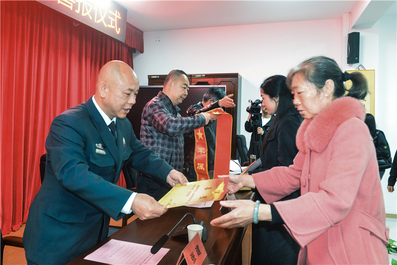 為進(jìn)一步弘揚(yáng)新時(shí)代擁軍優(yōu)屬光榮傳統(tǒng),營造“一人參軍、全家光榮;一人立功,全城敬仰”的濃厚社會氛圍,激發(fā)全社會尊崇軍人、關(guān)愛軍屬的熱情,4月21日上午,淅河鎮(zhèn)在二棉社區(qū)隆重舉行“淅河鎮(zhèn)立功受獎(jiǎng)軍人家庭集中送喜報(bào)儀式”,為3名榮立三等功的現(xiàn)役軍人家庭、6名“四有”優(yōu)秀軍人家庭送上崇高的榮譽(yù)與熱烈的祝賀。