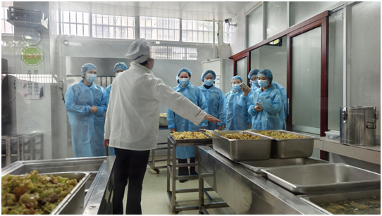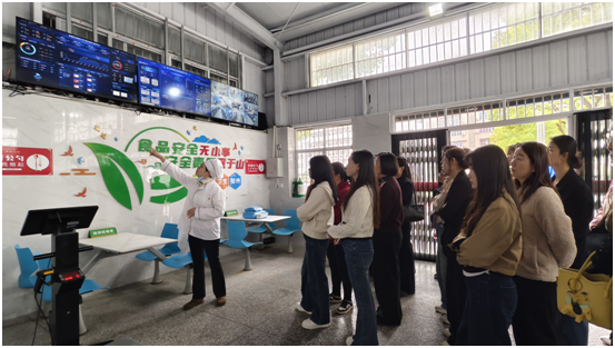 活動現場,家長代表在工作人員引導下,實地參觀食堂食材儲存、清洗加工、烹飪制作、餐具消毒、食品留樣等全流程操作,近距離查看后廚衛生環境、從業人員操作規范。在食堂數字管理平臺前,家長們詳細了解食材溯源、庫存管理、菜品配比、衛生巡檢等數字化監管流程,通過實時監控畫面,全面掌握食堂運營每一個細節,真切感受校園食堂標準化、精細化管理模式。