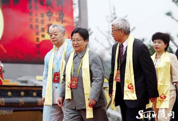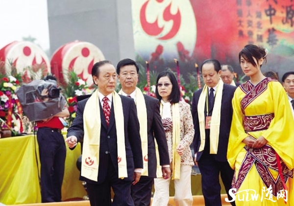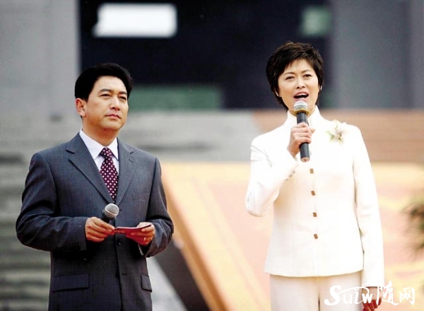 圖為 中央電視臺主持人水均益(左)、敬一丹(右)主持拜祖大典。