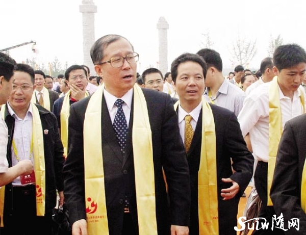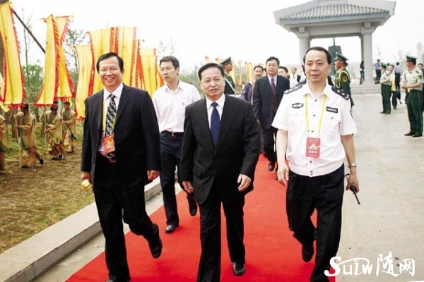 圖為 拜祖大典結束后,省委書記羅清泉(中)在市委書記馬清明(左),市委常委、政法委書記、公安局長萬學斌(右)等領導的陪同下,參觀炎帝神農故里新景區。