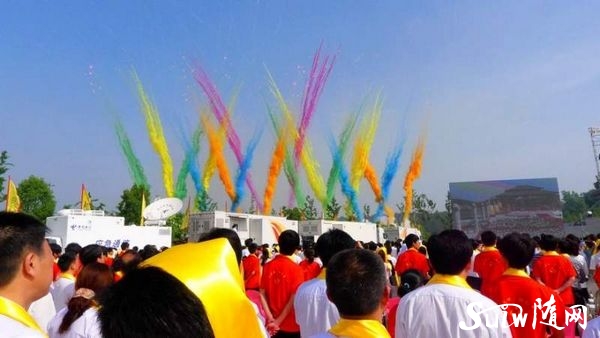 上午8點26分,壬辰年世界華人炎帝故里尋根節正式開幕。伴隨著燦爛的煙花,各個整齊的方陣緩緩入場。現場,精彩紛呈。極具震撼力的頌文、激情四射的歌舞曲引領著現場觀眾體驗著神農當年的生活情景。(拍攝:中國隨州網論壇網友童童)