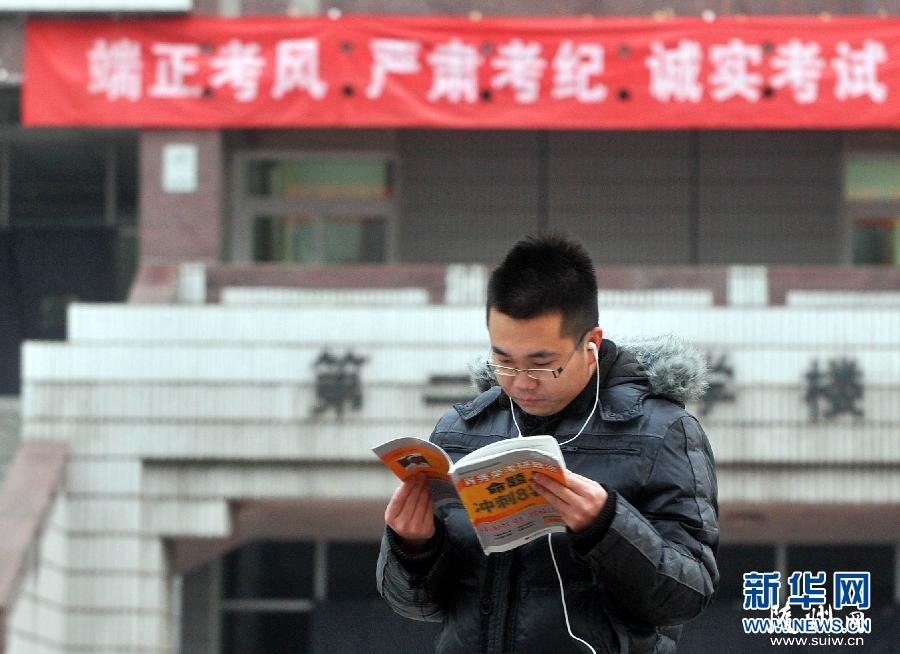1月4日,考生在北京一處考點(diǎn)外,等候進(jìn)入考場。當(dāng)日,2014年全國碩士研究生入學(xué)統(tǒng)一考試?yán)_帷幕。 新華社記者公磊攝
