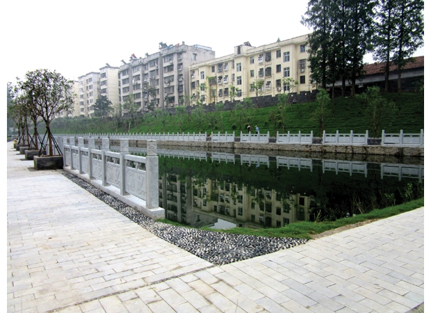 為了讓河水發揮自潔功能,市排水處在河床清淤后,采用鋪裝預制水泥框,然后填充上碎石子,讓污水沉淀,周邊還栽上水生植物,形成一個完整的水凈化系統。據悉,東護城河示范段共用了1200多個預制水泥框,鋪墊碎石近900立方米。