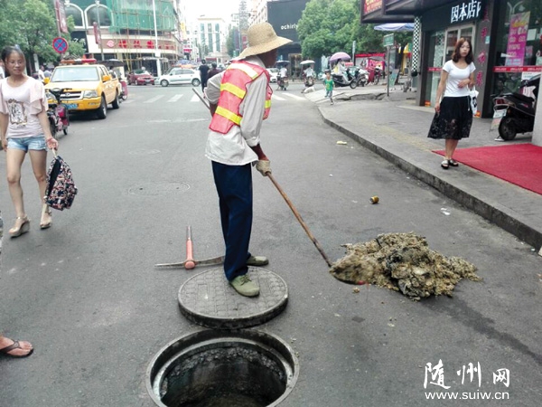今年6月1日和6月16日,隨州城區普降大雨,城區降水量1小時達54—60毫米。市排水處全體人員穿上雨衣雨靴、戴上應急燈,扛上鐵鎬等工具,迅速到達各自的防汛責任區,對城區所有道路、內河和明渠等排水設施進行巡查排澇。對城區332.3公里排水管網、14517座檢查井箅、雨箅、5條內河、4座泵站閘門進行了全面排查、清掏,確保管道暢通、井蓋無漂移、井箅無堵塞,泵站提水運行正常。在內河——西護城河,市排水處唐勇等人冒著被沖走的危險,站在濕滑的河道內,反復地蓋上被雨水沖開的井蓋。他們是蓋了被掀開,掀開再蓋,幾經周折,最終蓋上所有污水井蓋。